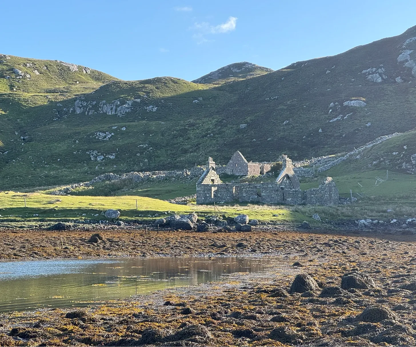 After arriving in Lewis, we eventually came to the deserted township of Bhalamus - with lots of empty houses. It was very eerie. The crofters there lived in relative comfort, and they had fine stone houses. But they were brutally cleared from their crofts in the 19th-century to make way for cattle-grazing.