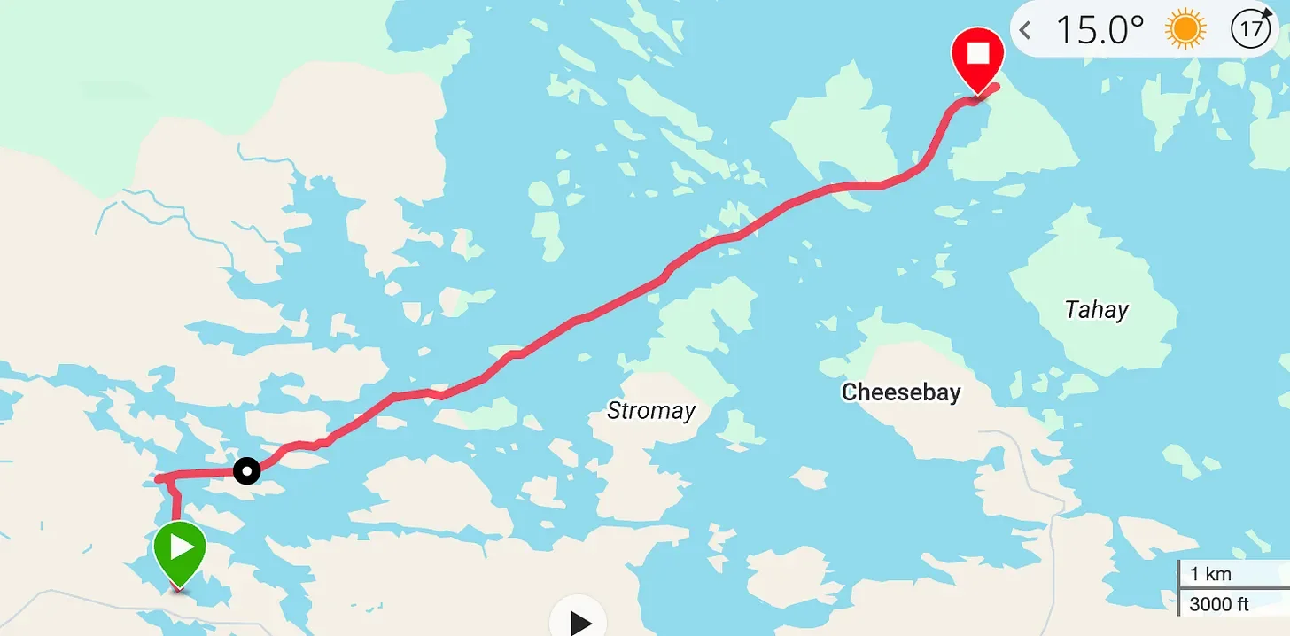 Navigating was challenging. We were going towards what the map said were three islands - but they looked like one. You don’t want to make a mistake because you don’t want to have to retrace your steps.